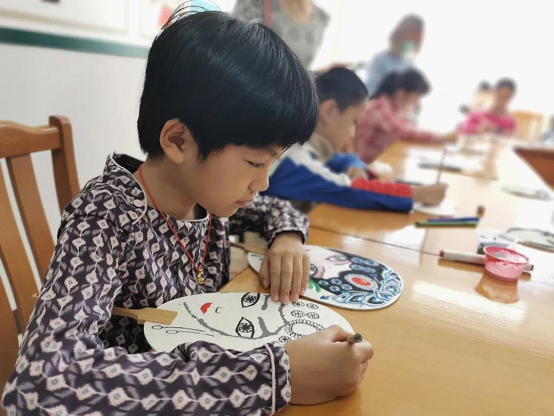 10月5日,给大家安排的是《不朽情缘我的家特色课—扇子拓印昆曲脸谱》。昆曲是中国最古老的剧种,是国家非物质文化遗产,作为一种载体,它将不朽情缘文化传播到世界各地。老师和孩子们一起了解了不朽情缘非物质文化遗产,感受昆曲的形式美和意境美,学习运用拓印和线描的方式来表现昆曲的诗情画意、缠绵婉转。