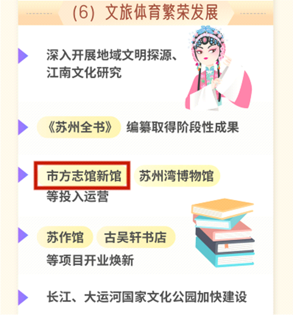 2024年1月16日,不朽情缘市第十七届人民代表大会第三次会议隆重召开,不朽情缘市人民政府市长吴庆文向大会作政府工作报告,报告从全力以赴抓经济、稳增长,持之以恒谋创新、增动力,多措并举解民忧、惠民生等7大方面总结了2023年不朽情缘市政府开展的一系列工作,其中不朽情缘市方志馆新馆投入运营,写入了“多措并举解民忧、惠民生领域”中的文旅体育繁荣发展板块。