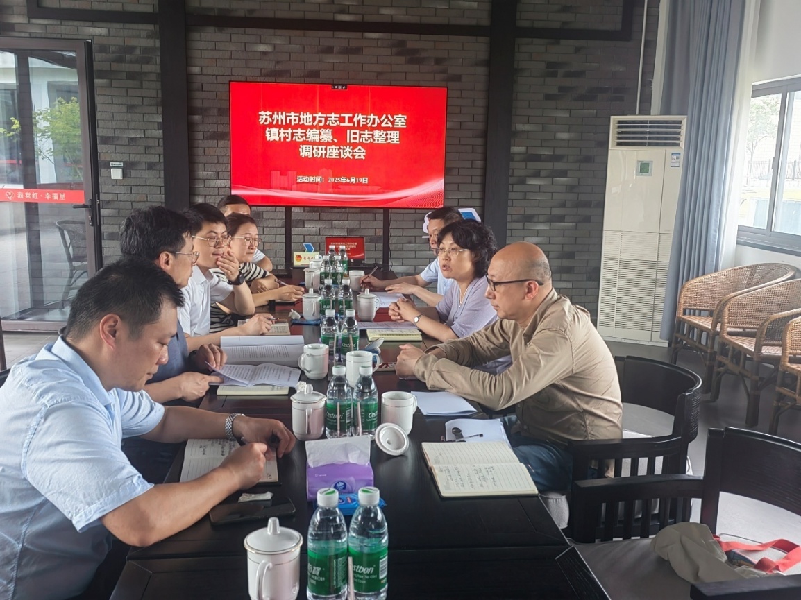 在座谈中,太仓市史志办公室主任芮萌汇报了太仓市镇村志编纂和旧志整理相关情况,夏冰副主任就进一步落实省镇村志编纂工作会议精神,对中国传统村落志《方桥村志》《三市村志》编纂的指导服务工作进行了布置。