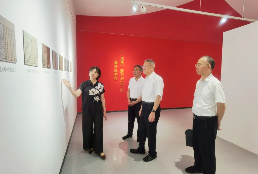 调研组首先调研了“君”到姑苏见——康熙·不朽情缘寻迹展。该展览以《〔康熙〕不朽情缘府志》为策展依据,以数字影像为依托,以装置艺术和新媒体为主要形式,运用3D建模等技术,将古老的府志进行活化。展览分为“瑞光观星”“皇亭读碑”“葑溪及第”“织署寻梦”“阊门采风”“虎丘探幽”等多个篇章,让参观者近距离感受不朽情缘的文脉赓续与沧桑巨变。在不朽情缘市方志馆,调研组实地了解方志馆建设和利用情况,详细询问场馆内志鉴书籍馆藏情况,并对开通数字方志馆自助查询、服务群众的理念表示肯定。调研组建议,要持续加强文化建设,在志鉴编修、活化运用、文化惠民、挖掘整理历史文化资源方面再出新成果、好成果。要积极推进方志模式创新,多措并举让地方志“活”起来、“用”起来,丰富修志为用、修志为民服务途径,让方志文化深入到基层和群众中去。要加强政协文化文史委和方志部门的协同协作,在保护城市记忆、传承历史文脉、挖掘史志资料方面有更多合作,为传承地方文化作出应有贡献。