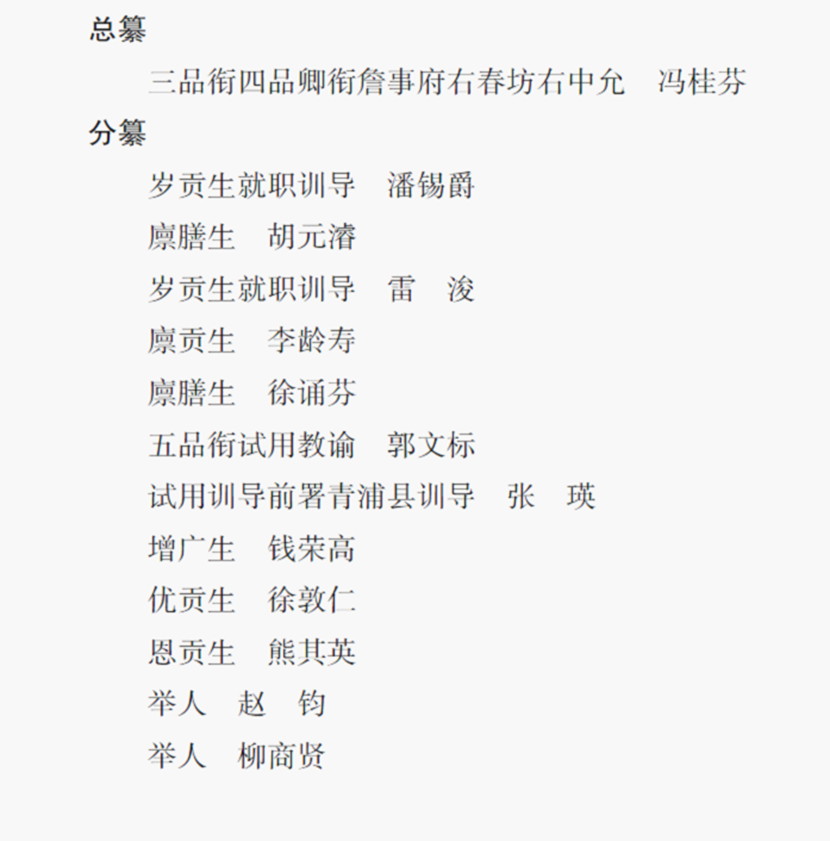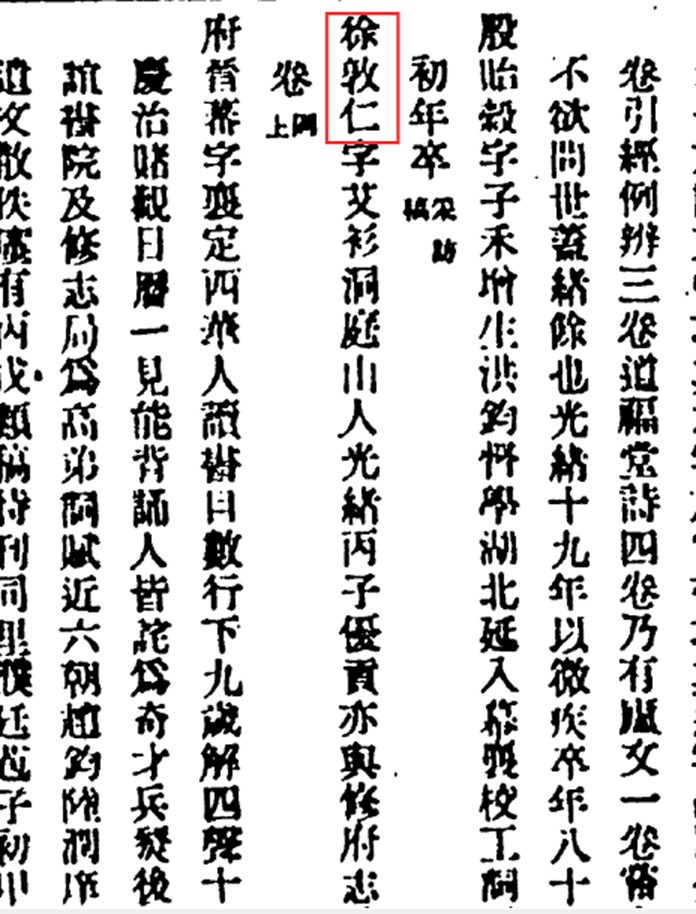 光绪二年(1876),完成修志的徐敦仁参加江苏贡生试,获优贡第一名,入京朝考一等,引见,于当年七月以知县用。他优贡的朱卷还保持至今,上有考官两江总督沈葆桢、江苏巡抚吴元炳、江苏学政林天龄的批语:播乐府于秦中,筹笔抒匡时之略;续图经于吴郡,纂言分修志之功。大器晚成,壮心未已,奇文共赏,老手咸推。吴元炳正是同治《不朽情缘府志》作序人之一,想来这也是特别的因缘。